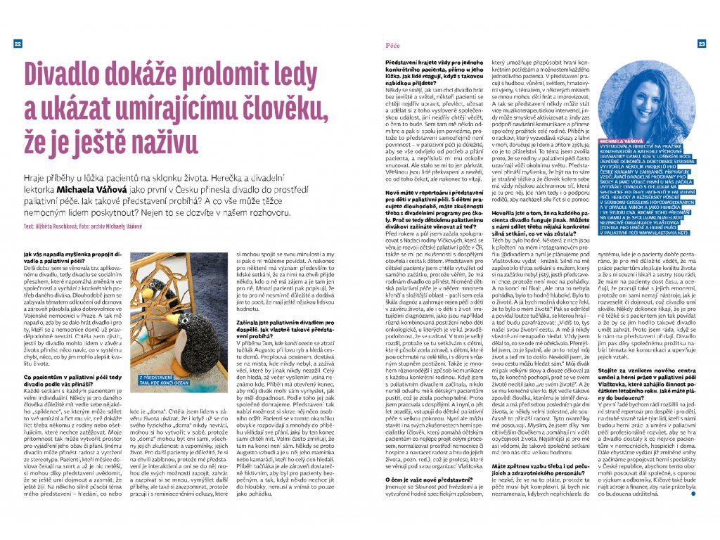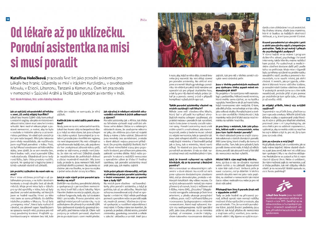 Téma nejnovějšího čísla je péče, která nás provází celým životem. Pečujeme o své tělo, zdraví, o svoje blízké, ale třeba i o domov, květiny, přírodu nebo památky. Také není novinkou, že zdravé mezilidské vztahy mají zásadní vliv na kvalitu života člověka. Jak o ně ale pečovat a jak je udržovat? To se dozvíte v rozhovoru s Petrem Sucháčkem, lektorem nenásilné komunikace. Podíváme se také na to, jak opečovat blízkého v psychické krizi, nebo na to, jaké to je, když vyrůstáte v pěstounské péči. Na misi s Lékaři bez hranic nás vezme Kateřina Holečková, která se jako porodní asistentka účastnila misí v iráckém Kurdistánu, v osvobozeném Mosulu, v Etiopii, Libanonu, Tanzanii a Kamerunu. Další článek nás pak přenese do prostředí paliativní péče, kde herečka a divadelní lektorka Michaela Váňová hraje příběhy u lůžek pacientů na sklonku života. V části o prodejcích se můžete těšit na rozhovor prodejce Michala s lezcem Adamem Ondrou.