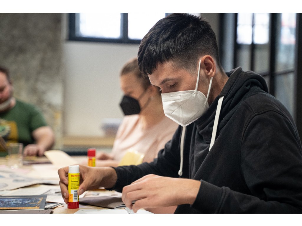 Sešit je ručně výroben našimi prodejci na pravidelných setkáních rukodělných dílen.